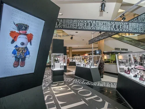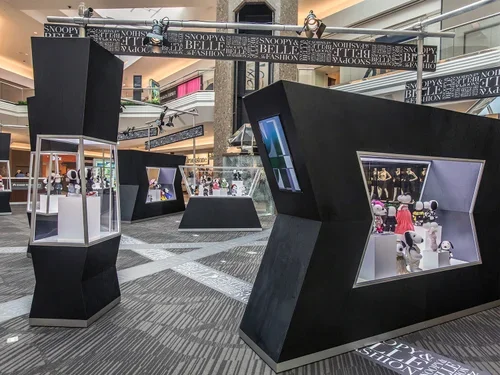 Displayed within highly public and trafficked malls, in 6 selected cities, it was key that the design was secure and self-contained for the highlighted doll sets and location specific video content. MMD devised a system of electrified kiosks in distinctive shapes evocative of the first exhibition. This system, combined with the SBIF signature, has created a greater opportunity for visibility, marketing, and joy spread to Peanuts fans across the US.