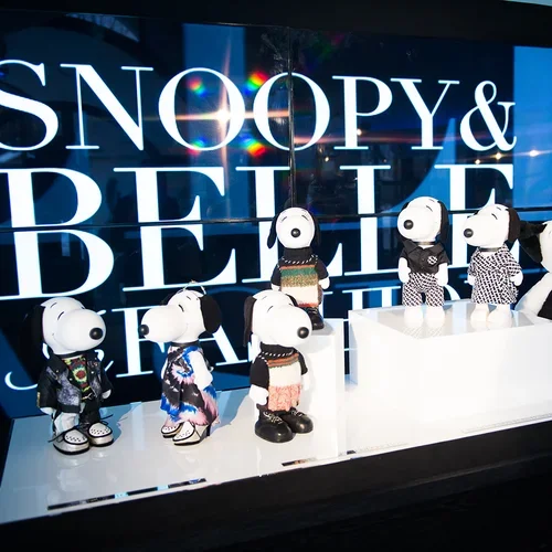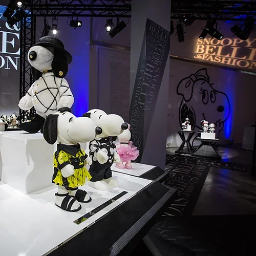Over 30 pair of Snoopy and Belle dolls, featuring looks from these top designers, were featured at a special 3-day exhibit at the Sky Room at the New Museum in New York City. MMD was enlisted to design all aspects of the event, which included custom-designed display fixtures, commemorative merchandise, and a 17-foot video wall. The event was held during the first three days of NY Fashion Week, and was attended by celebrities in fashion and entertainment.