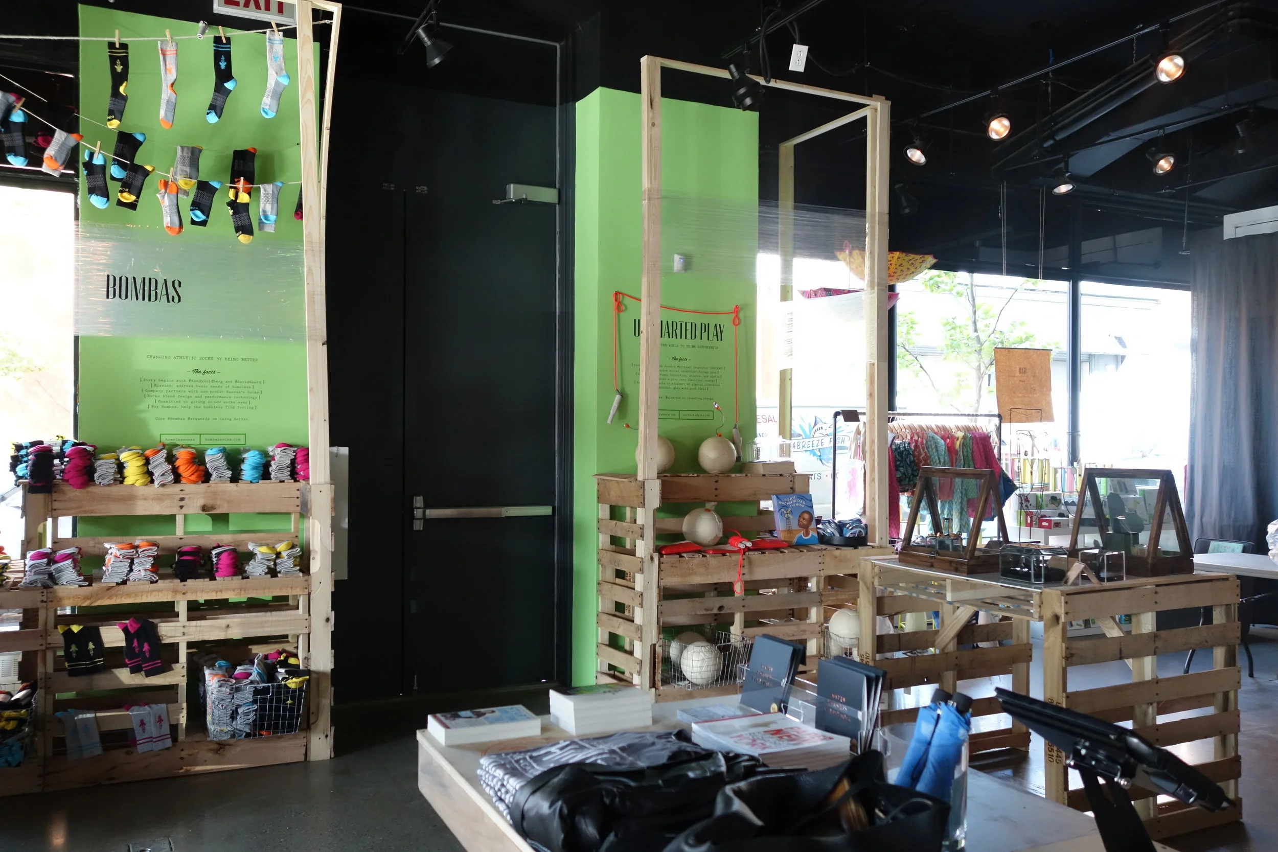 STORY is a retail space that has the point of view of a magazine, changes like a gallery, and sells product like a store. Founded by Rachel Shechtman, this innovative Chelsea retail space changes their retail mix and interiors several times a year and has become a NY favorite. GOOD STORY focused on brands and products that are produced with an ecological focus, or that are philanthropically minded. MMD helped create an environment using re-purposed wooden shipping pallets, which were later recycled. These pieces worked to create an engaging ad-hoc